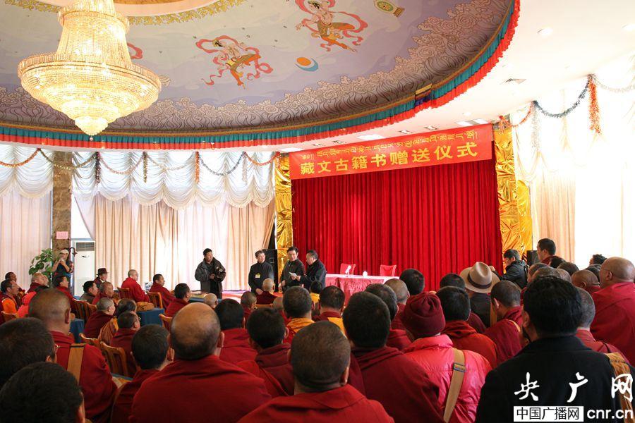 西藏出版協(xié)會今日向區(qū)內(nèi)三百多家寺廟贈送藏文古籍書(央廣網(wǎng)記者 普布次仁 攝)