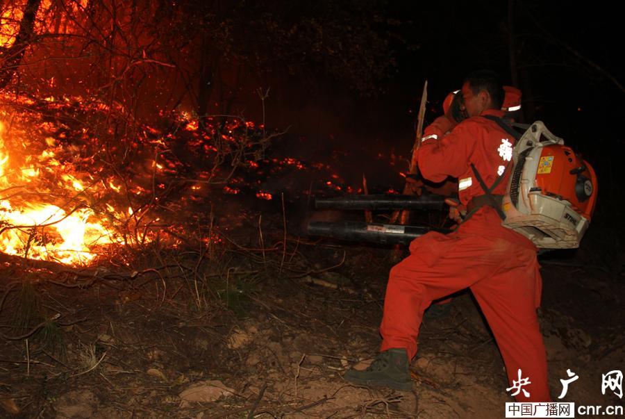 昆明森警連夜奮戰在火場一線(央廣網發 彭明鑫攝)