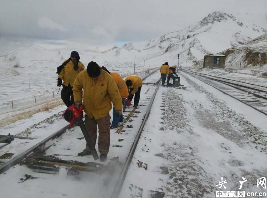烏斯特車站鐵路員工認真清理積雪保障安全 (央廣網(wǎng)發(fā) 姚旭東攝)