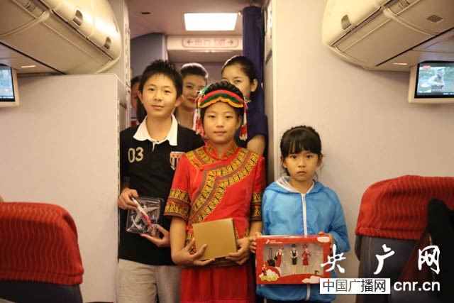 “多年來,他們一直有一個夢想,去看看山區外的世界。此次,在鼎和保險、深圳市團委、深圳航空的幫助下,他們第一次走出山區,第一次飛上藍天,第一次眺望大海。我代表機長、乘務組,對兩位客人及一路相隨的乘客再次表示最誠摯的歡迎。”當深航ZH9996航班乘務長的廣播響起后,吳曼秋小朋友用一曲彝族歌曲《祝酒歌》贏得了全客艙旅客的熱烈掌聲,同行的兩位小旅客也向她送去了祝福的擁抱。