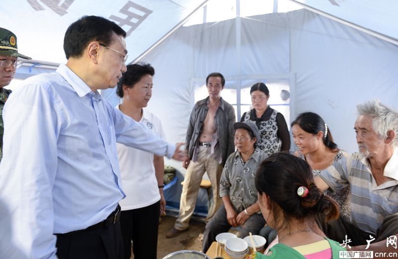 4日下午,李克強來到云南魯?shù)檎鹫鹬旋堫^山鎮(zhèn)災(zāi)民臨時安置點,看望受災(zāi)群眾。