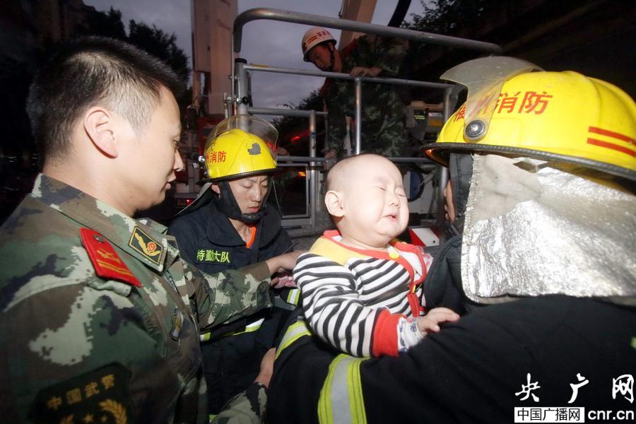 據街道社區工作人員介紹,4號樓406室,5號樓204室,兩對母子被濃煙圍困在樓頂,兩名孩子都剛滿月,另外3號樓一名80多歲的老太太被困在家中,如不及時救援,隨時可能危及到孩子和老人的生命安全。現場指揮部得知這一情況后,一邊調集90米舉高車從火場外圍營救被困群眾,一邊火速組織10個搜救小組深入燈飾城內部和三棟居民樓,挨家挨戶搜救并疏散被困人員。為確保不遺漏任何一名群眾,指揮部先后5次組織搜救力量進行反復搜救疏散。截止當天下午4時左右,消防部門共從居民樓內營救出45名被困群眾,疏散286人。下午5時50分左右,火災被撲滅。