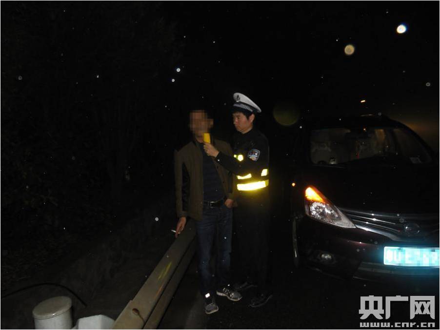 民警在對駕駛人王某進行呼氣酒精含量測試(警方供圖)