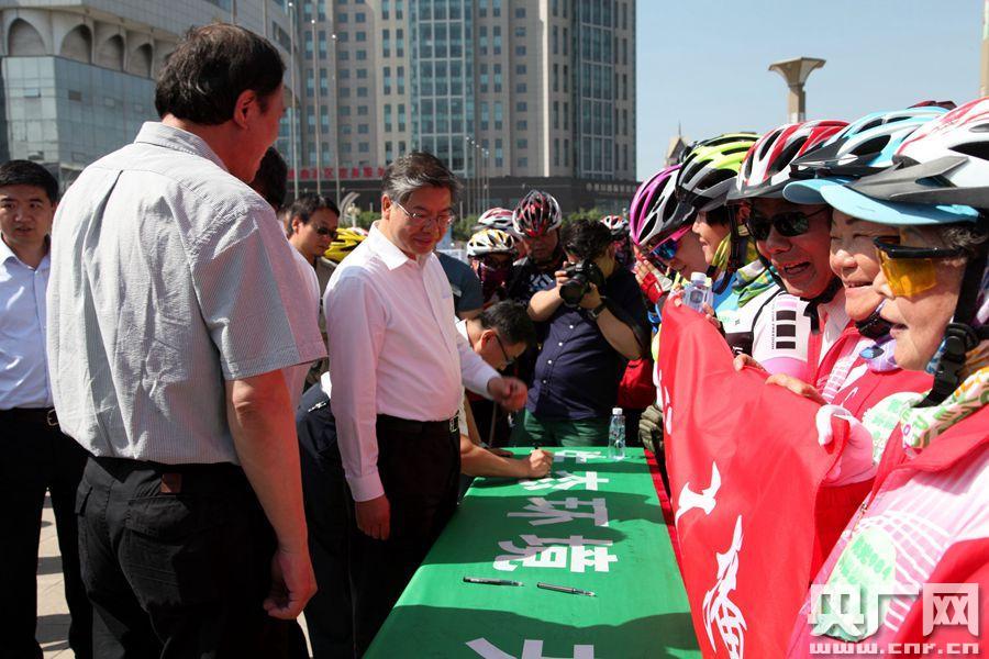 寧夏交通廣播派出兩路98.4主播小分隊帶領近400名騎行志愿者和徒步志愿者參加了活動,以實際行動助力環保事業!寧夏回族自治區副主席劉可為參加了光明廣場的騎行出發儀式!98.4志愿者們進行了環保宣誓,力爭將環保公益進行到底。