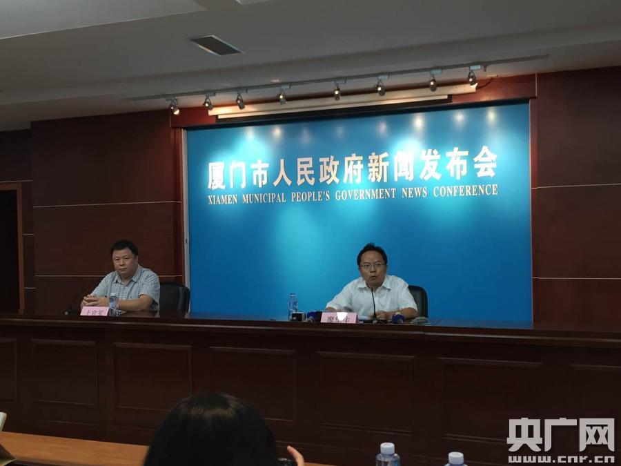 廈門市政府秘書長廖華生通報災后重建的簡要情況(央廣網發 呂貝娜 攝)