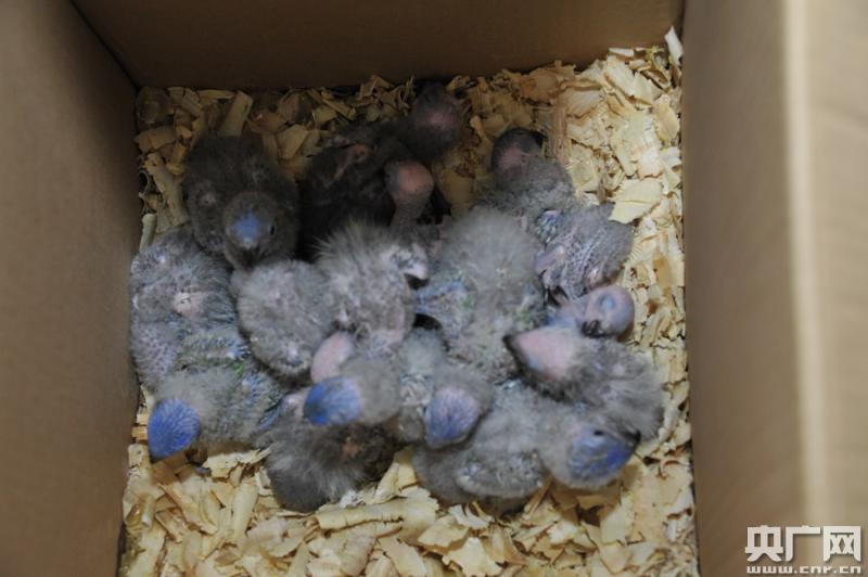 廈門海關查獲的剛被孵化成幼鳥的鸚鵡(央廣網發 黃穎攝)