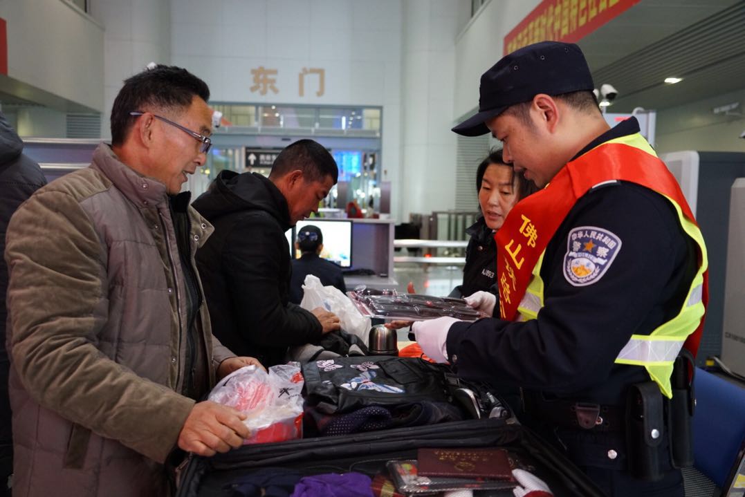佛山西站派出所把安檢查危作為春運安保工作的重中之重。春運開始之前,會同佛山西車站相關部門對安檢儀、安全門等安檢設備進行一次全面檢查、調試,確保儀器性能良好,同時配備一批新的手檢儀,抽調專人對車站安檢員工開展培訓、抽查,提高了安檢員對危險品的發現和處置能力。