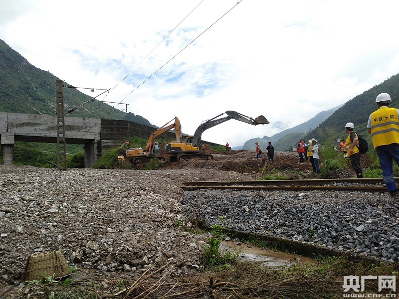 8月2日成昆鐵路再度發生泥石流水害,約3.12萬方泥石上道掩埋線路,成昆鐵路中斷行車。張挺攝