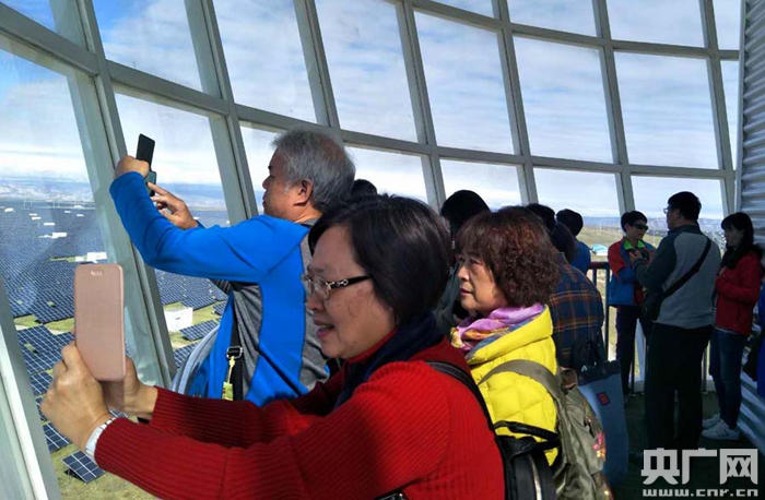 臺灣少數(shù)民族交流團成員爭相拍攝光伏電板矩陣(央廣網(wǎng)發(fā) 青海臺辦提供)