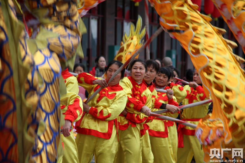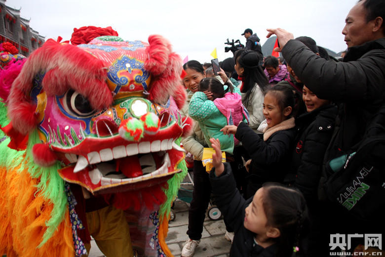 廣西桂林市恭城瑤族自治縣平安鄉韋家廠瑤族文化村,“龍騰獅躍鬧新春”龍獅大匯演活動現場(央廣網發 通訊員鄭智敏 攝)