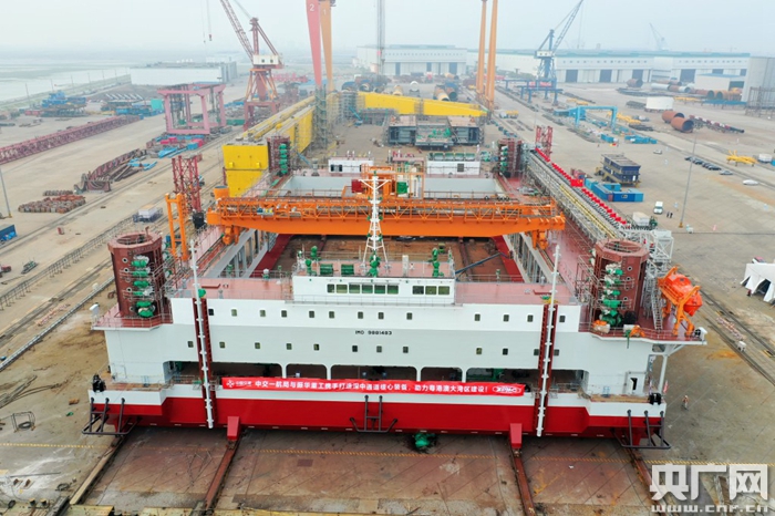 自去年7月正式開工以來,經過8個月的奮戰實現整船下水,并將再用約3個月時間完成后期舾裝、設備調試,預計今年7月抵達深中通道現場進行調試。