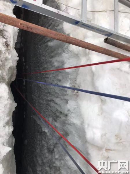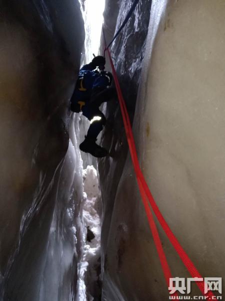狹窄的冰縫給救援帶來了不小的困難(央廣網(wǎng)發(fā) 甘肅藍天救援隊供圖)