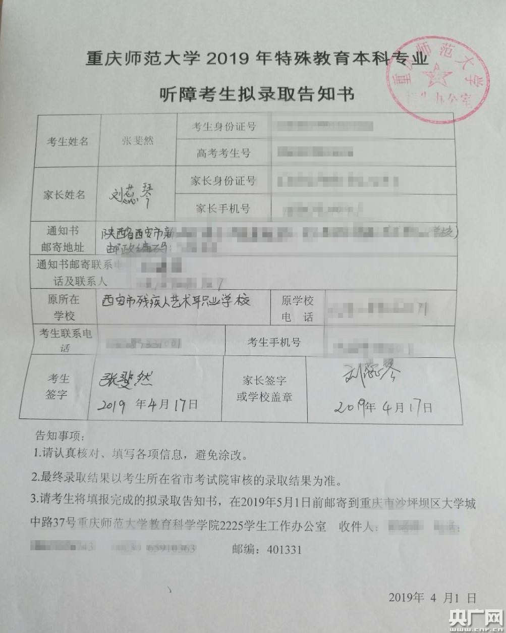 7所大學發來錄取通知 堅定學習特殊教育