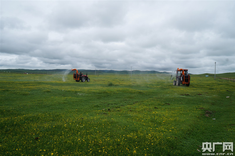 大型機(jī)械播撒防治蟲害生物制劑(央廣網(wǎng)發(fā) 青海草原總站供圖)