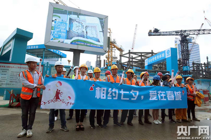 8月6日,記者目睹了中建二局云南分公司春之眼項(xiàng)目部以工地為鵲橋,精心組織的一場(chǎng)以“相約七夕,筑夢(mèng)云滇”為主題的工地集體情人節(jié)活動(dòng)。