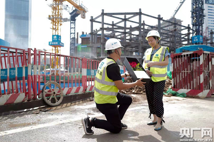 塔吊司機(jī)成忠富今年31歲,塔吊指揮何丹今年26歲,他們是一對(duì)農(nóng)民工夫妻,常年在外打工。“從沒過(guò)過(guò)情人節(jié),這還是第一次,老婆和我在工地上吃苦卻沒給過(guò)老婆什么,感謝項(xiàng)目為我們搭建這難得的機(jī)會(huì),老婆,我愛你。”塔吊司機(jī)成忠富激動(dòng)的向妻子表白著,妻子何丹飽含深情地笑道,“苦不苦的無(wú)所謂,只要天天能在一起就滿足了,老公,你辛苦了。”。