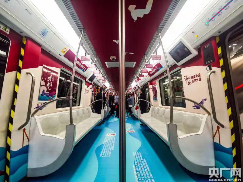 央廣網(wǎng)大連9月27日消息(記者賈鐵生)9月27日,“頌美中國 追夢大連”主題列車在大連地鐵正式上線。在車廂里,不僅可以看到中國各地的地標(biāo)建筑、中國第一顆衛(wèi)星“東方紅”、祖國人民生活的變遷,還可以看到大連國際會議中心、中山公園、跨海大橋,以及在大連這座文明、浪漫元素。置身其中,仿佛來到“移動畫廊”,能感受到70年來,新中國發(fā)生的天翻地覆的變化,以及大連的不斷發(fā)展。