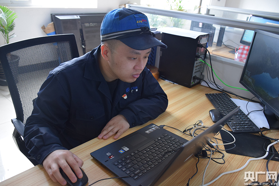 徐海洋正在編輯旅客服務信息系統數據(央廣網發 萬新 攝)