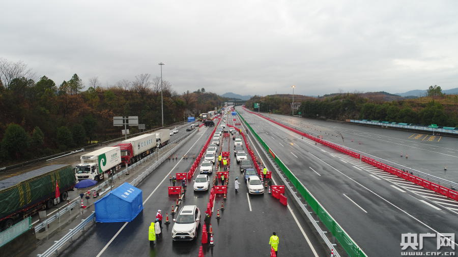 為加快檢疫檢測速度,京珠北高速已于2月4日下午2:00關閉粵北停車區,全面實行交通管制,把檢測車道前移,增加復式檢測車道,應對車流高峰。