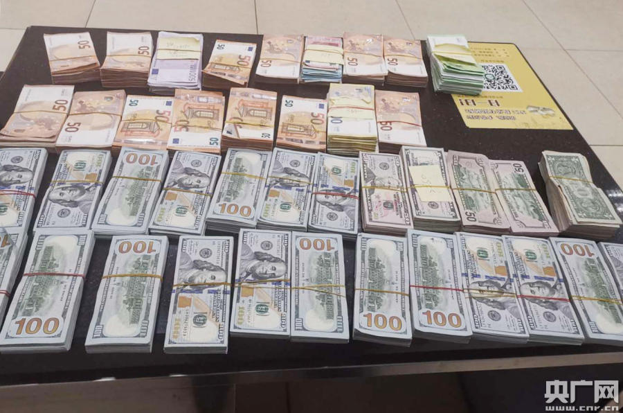 男子攜巨額外幣約合人民幣292萬元出境被查(央廣網發 通訊員供圖)