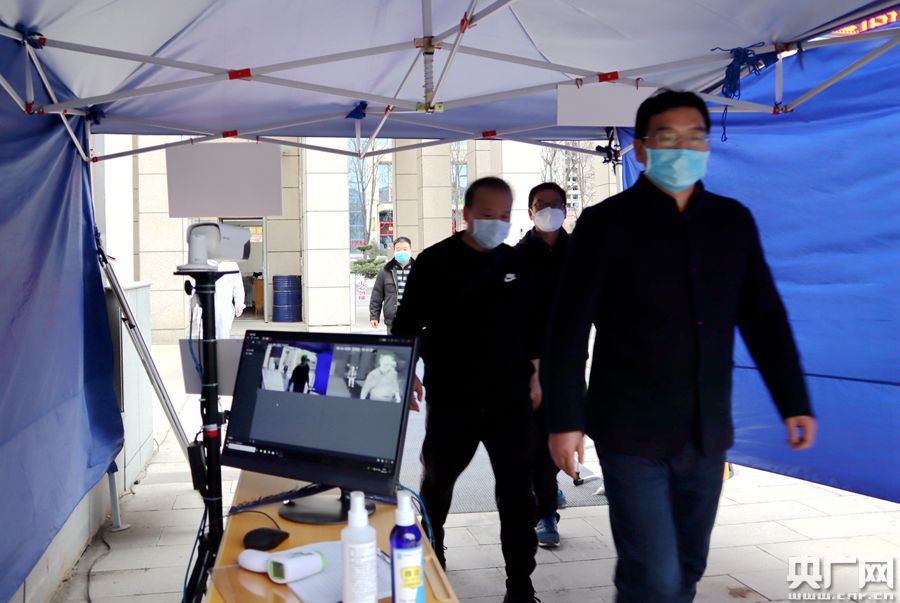 圖為寶雞市石油中學(xué)演練模擬使用學(xué)生入校全自動(dòng)熱成像測溫篩查系統(tǒng)(央廣網(wǎng)記者 舒隆煥 攝)