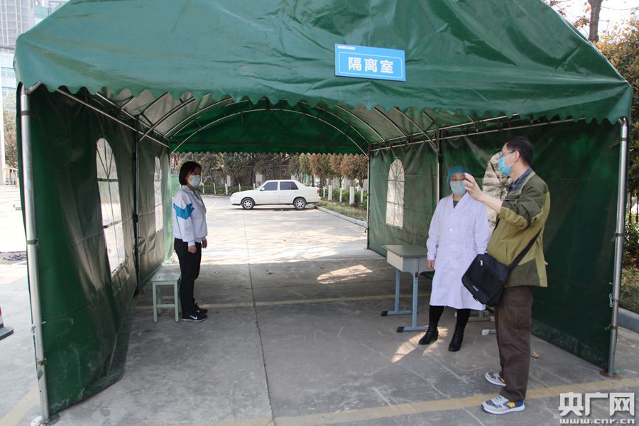 圖為西安市高新一中調(diào)式學(xué)生入校體溫檢測設(shè)施(央廣網(wǎng)記者 舒隆煥 攝)