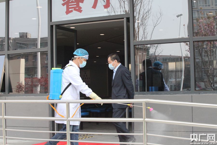 圖為西咸新區(qū)灃東新城車輛中學(xué)對(duì)學(xué)校餐廳進(jìn)行消殺(央廣網(wǎng)記者 舒隆煥 攝)