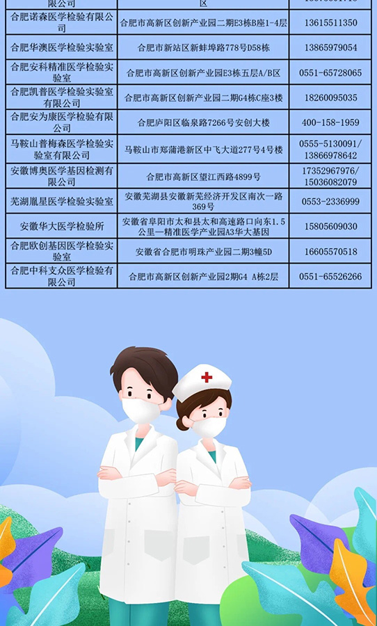 央廣網合肥5月2日消息(記者王利)日前,安徽省衛健委公布具備新冠病毒核酸檢測能力的機構名單,其中醫療機構33家,第三方機構19家。