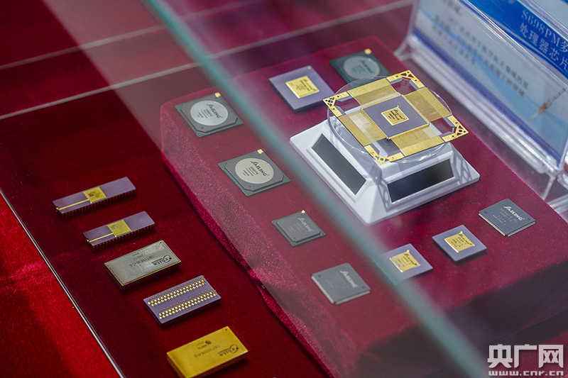 歐比特自主研發的衛星處理器芯片(央廣網記者 官文清 攝)