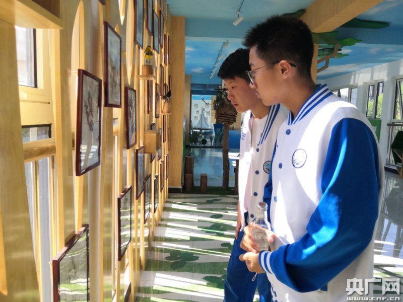 兩位同學正在參觀生態科普館(央廣網發 城陽區野生動植物保護協會供圖)
