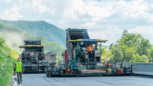 高速正在進行路面瀝青攤鋪 (通訊員供圖)
