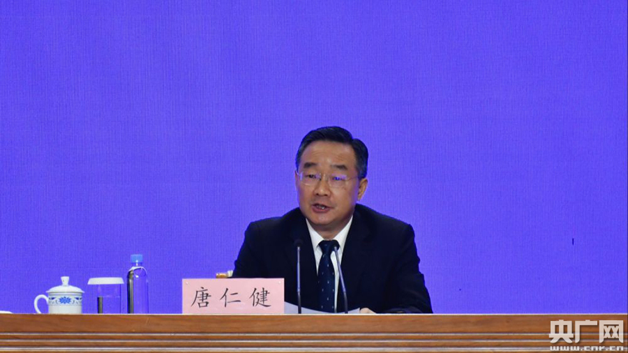 甘肅省省長唐仁健介紹甘肅脫貧攻堅整體情況(央廣網記者 張磊 攝)