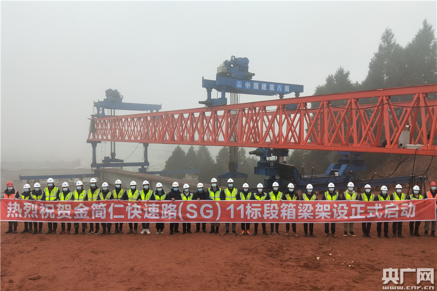 箱梁架設啟動(央廣網發 中建八局供圖)