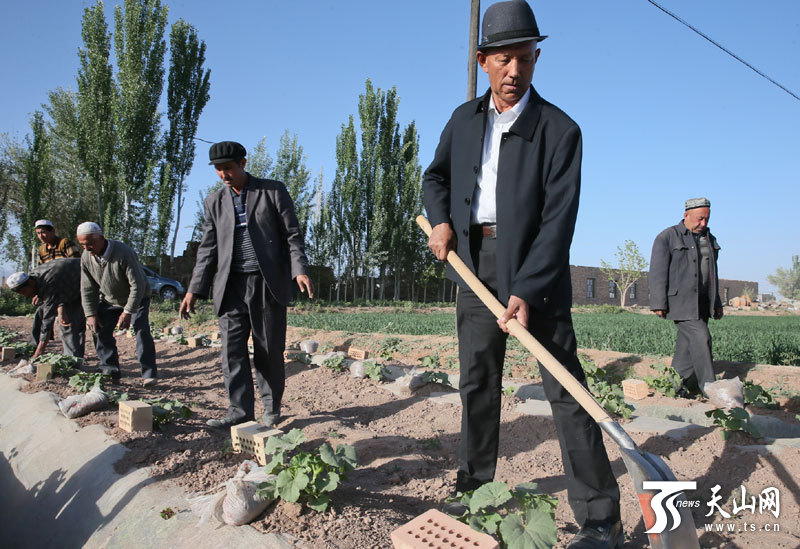 則克爾認真看了種子的發育情況后,帶著一些農民又沿著田埂除草、翻土。6月就要瓜熟蒂落了,則克爾期待著豐收的日子。他說:“到時候我會連穿鞋子的時間都沒有呢。”