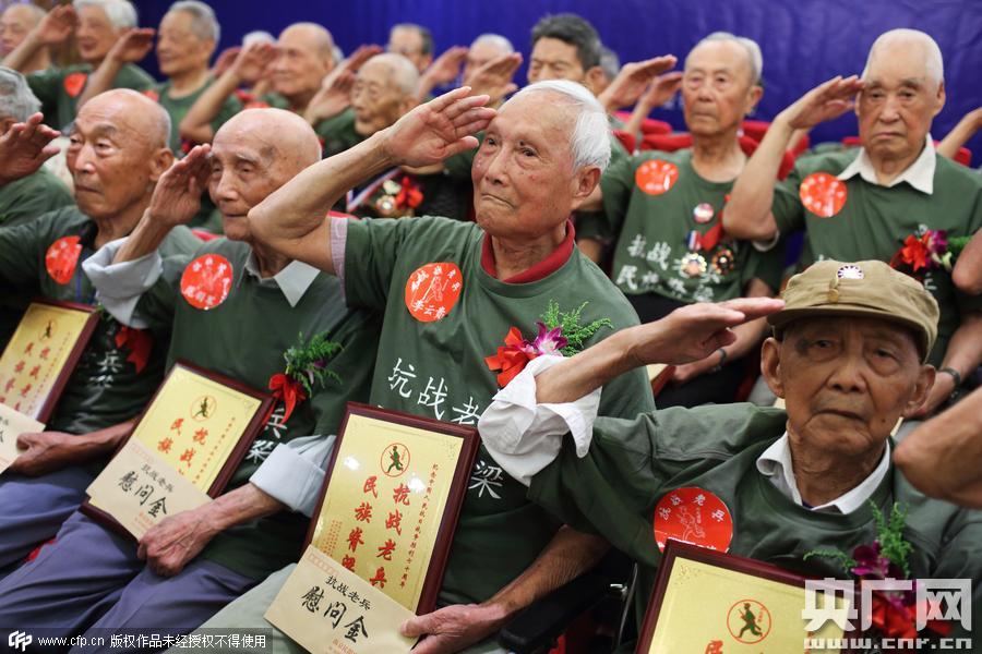 2015年7月5日,三十三位來自全國各地的抗戰老兵齊聚南京,參加南京1213志愿者同盟舉辦的2015紀念77抗戰78周年老兵重聚活動,他們中有參加過南京保衛戰、淞滬會戰、武漢會戰、長沙會戰、常衡會戰的前線將士,也有從事輜重、通信、醫護等工作的當年老兵,共憶崢嶸歲月。