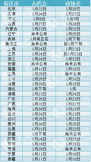 (資料來源于各省日報及人大、政協(xié)網(wǎng)站,內(nèi)容截至1月4日,實際時間以當?shù)貢h召開時間為準。制表 馬麗婭)