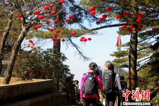春節(jié)期間,黃山山道兩邊樹上掛滿紅燈籠!∮嗖z