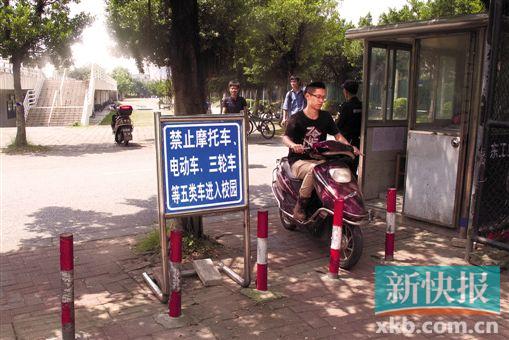 ■在進(jìn)出廣工校園處豎有禁止摩托車(chē)、電動(dòng)車(chē)進(jìn)出校園的告示。