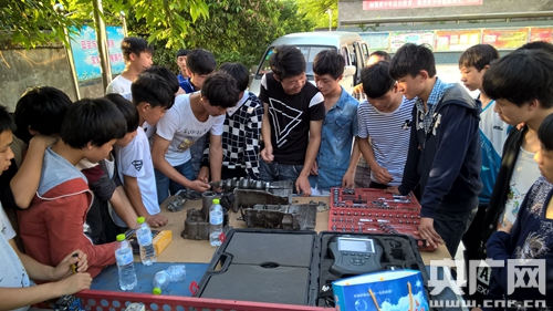 豐都縣紅星中學的學生正在展示變速器拆裝