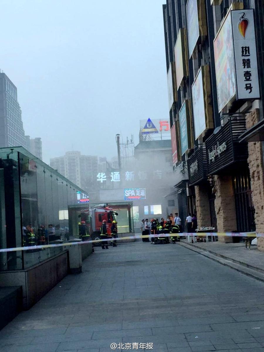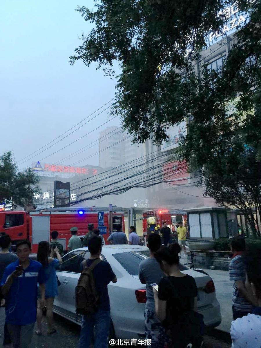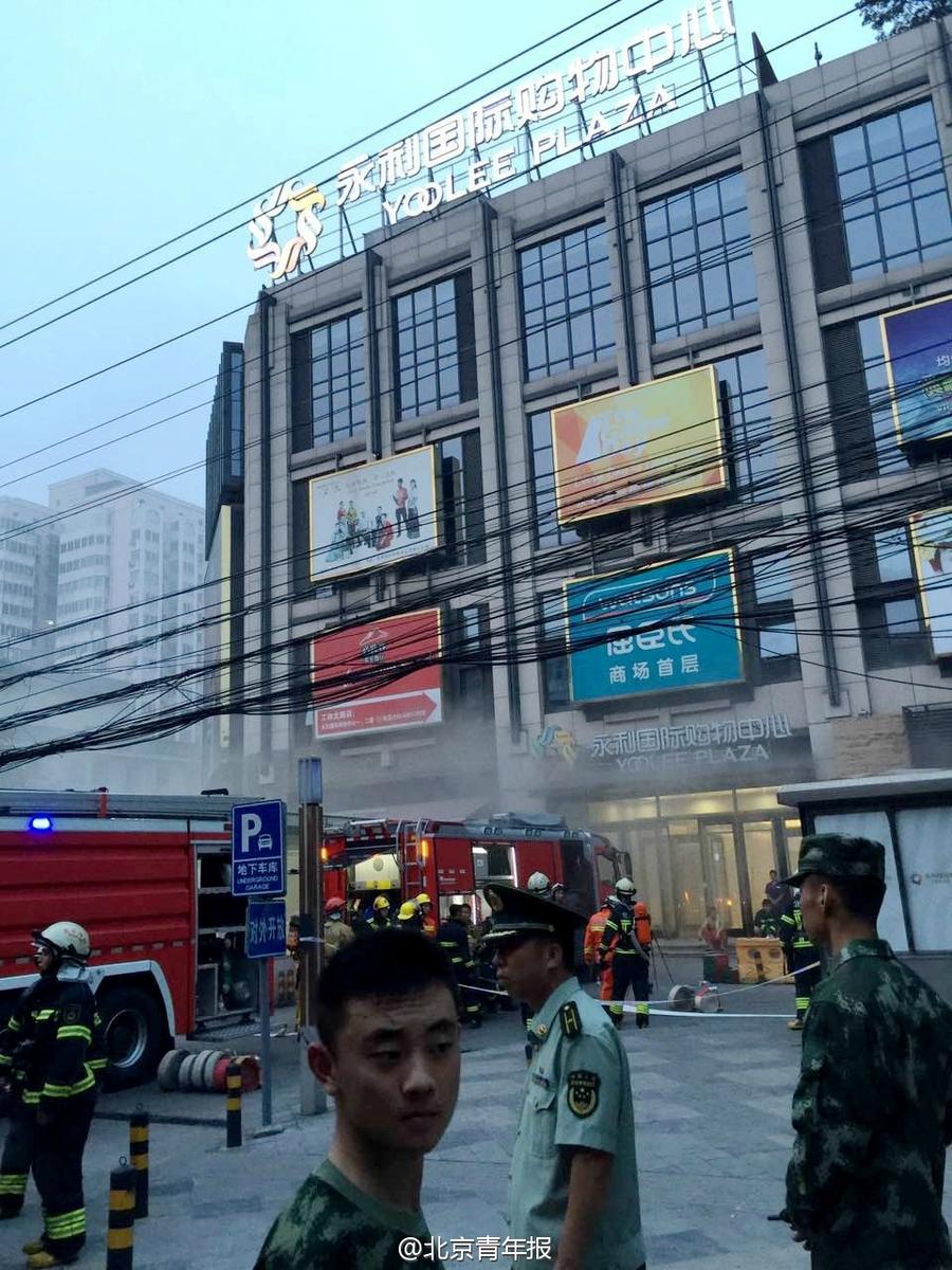 北京一購物中心店鋪著火 現場濃煙滾滾