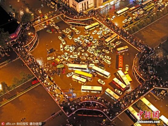 資料圖 7月24日晚,一場暴雨突降西安,導致城區多處積水嚴重,小寨十字因積水道路堵塞,大量市民被迫徒步回家。