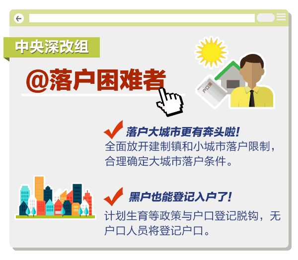 造福民眾讓深改組的故事深入人心。對重大改革尤其是涉及人民群眾切身利益的改革決策,深改組建立了社會評估機制。遇到關系復雜、牽涉面廣、矛盾突出的改革,深改組總能從人民的實際利益出發謀劃方案、制定舉措、推進落實。群眾生活情況怎么樣?群眾訴求是什么?改革能給群眾帶來哪些獲得感?總是深改組最關心的問題。1000天來,深改組先后對改革行政審批制度、改革工商注冊制度、推進社會主義核心價值體系建設、實施單獨兩孩政策、廢止勞動教養制度、改革和完善干部考核評價制度、改進干部選拔任用機制、堅持厲行節約反對浪費、深入開展黨風廉政建設和反腐敗斗爭等全社會高度關注、各方面抱有急切期盼的一系列問題,及時組織有關部門進行研究,出臺了系列政策措施和制度文件,有的還做出了法律決定。這些改革措施涉及到百姓生活的方方面面,對我國經濟發展和民生改善產生了巨大的推動作用和深遠的社會影響。深改組在涉及農民利益和城鄉關系等問題上動真刀、亮真槍。推進人的城鎮化的重要環節在戶籍制度,加快戶籍制度改革,是涉及億萬農業人口轉移的重大舉措。深改組推出了尊重城鄉居民自主自愿、合理引導農業人口轉移落戶城鎮的戶籍制度改革方案。為了促進大中小城市和小城鎮合理布局、功能互補,搞好基本公共服務,維護好農民的土地承包經營權、宅基地使用權、集體收益分配權,深改組陸續推出了《關于引導農村土地承包經營權有序流轉發展農業適度規模經營的意見》和《積極發展農民股份合作賦予集體資產股份權能改革試點方案》等舉措,為農民在城鎮化進程獲得更大的土地轉讓收益掃清了障礙。