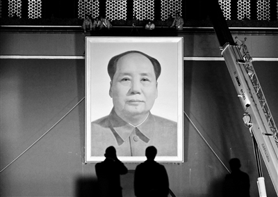 據(jù)了解,每年國(guó)慶節(jié)前夕,天安門城樓都要更換新的毛主席畫像,被風(fēng)吹日曬稍許褪色的舊畫像則被取下。