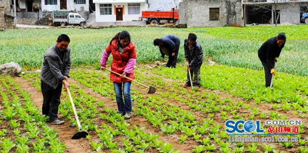 圖為甘洛縣兩河鄉秀水村蔬菜基地里,菜農們正在管理蔬菜。