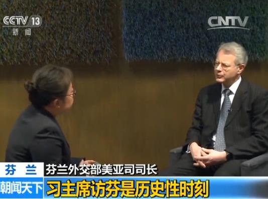 芬蘭外交部美亞司司長(zhǎng)泉溪在接受央視記者采訪時(shí)表示,非常高興中國(guó)國(guó)家主席習(xí)近平對(duì)芬蘭進(jìn)行國(guó)事訪問(wèn),中芬兩國(guó)有著傳統(tǒng)、務(wù)實(shí)的合作關(guān)系,希望未來(lái)能有更長(zhǎng)足的發(fā)展。