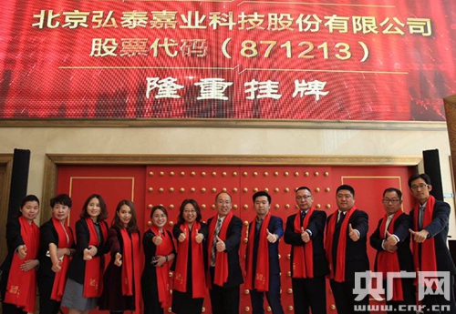 央廣網北京4月27日消息(記者 于聞)4月27日,北京弘泰嘉業科技股份有限公司在北京市金融大街全國中小企業股份轉讓系統中心隆重舉行新三板掛牌敲鐘儀式。該公司董事長畢燃等負責人、投資方負責人以及媒體代表等出席掛牌儀式,共同見證了“遠程病理服務第一股”啟航。