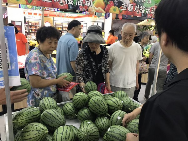 在社區超市,大興西瓜備受歡迎。