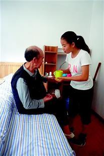 2013年,陳春林重返校園時,一直將父親帶在身邊。每天,她做好三餐,照顧父親的日常生活,并幫他做康復。在女兒精心照料下,陳世日雖然有一邊身子仍不能動彈,但已可以拄拐下地慢走。