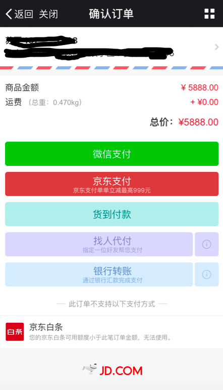 消費者可以在自己的微信“發現”頁面點擊“購物”,進入京東頁面點擊“京東手機”后,點擊iPhone 8新品上市的廣告,即可看到移動專項版的iPhone8售賣信息,點擊“立即購買”即可完成預購下單。具體操作示例如下: