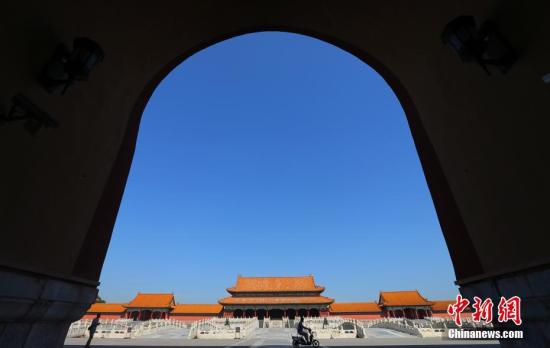 9月18日,故宮博物院工作人員在故宮內穿行。中新社記者 楊可佳 攝